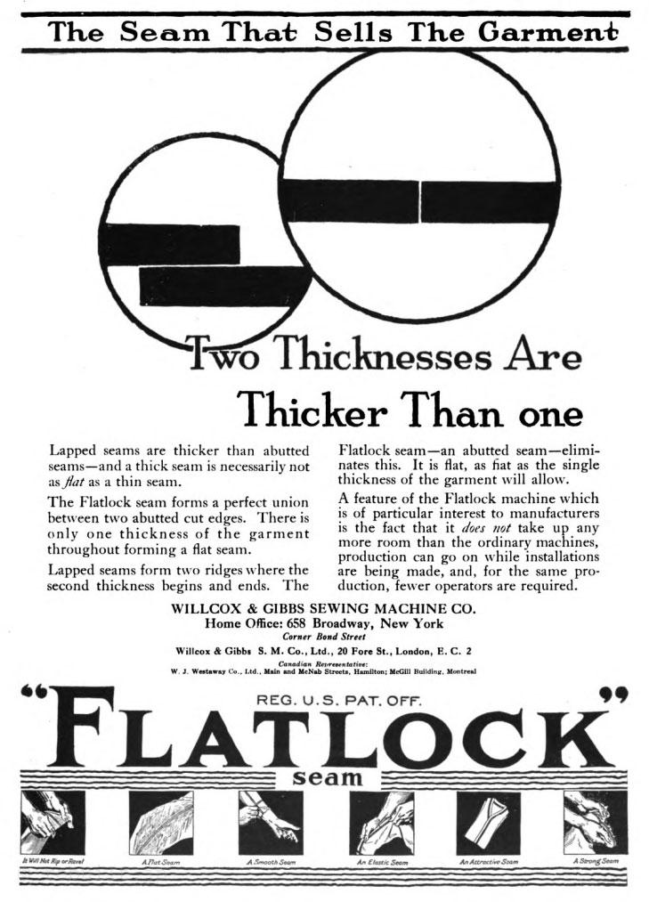 For years, the foremost manufacturers of knit underwear have used the Flatlock Seam for cuffs and anklets. The unusual elasticity, strength and flatness of the seam fit it especially for service at these points.