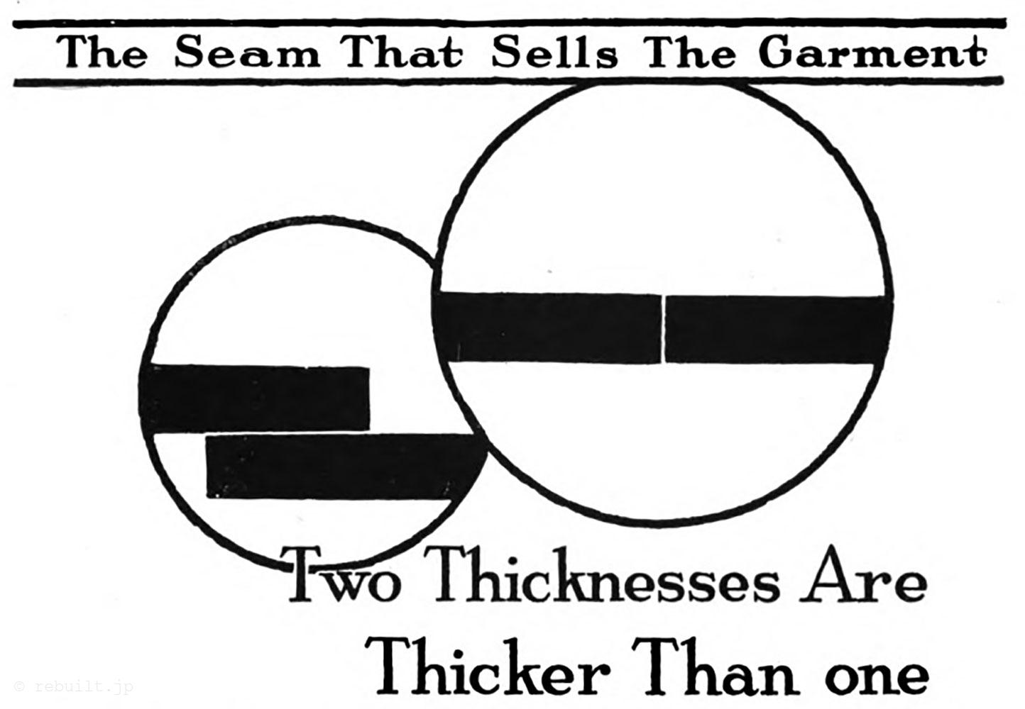 フラットロックシームはその名の通り、2つの裁断端を接するように平らに縫い合わせるため、生地自体の厚さと同じになります。極薄生地から極厚生地まで、あらゆる厚みの生地で作られた衣服に、他に類を見ない優れた縫い目です。