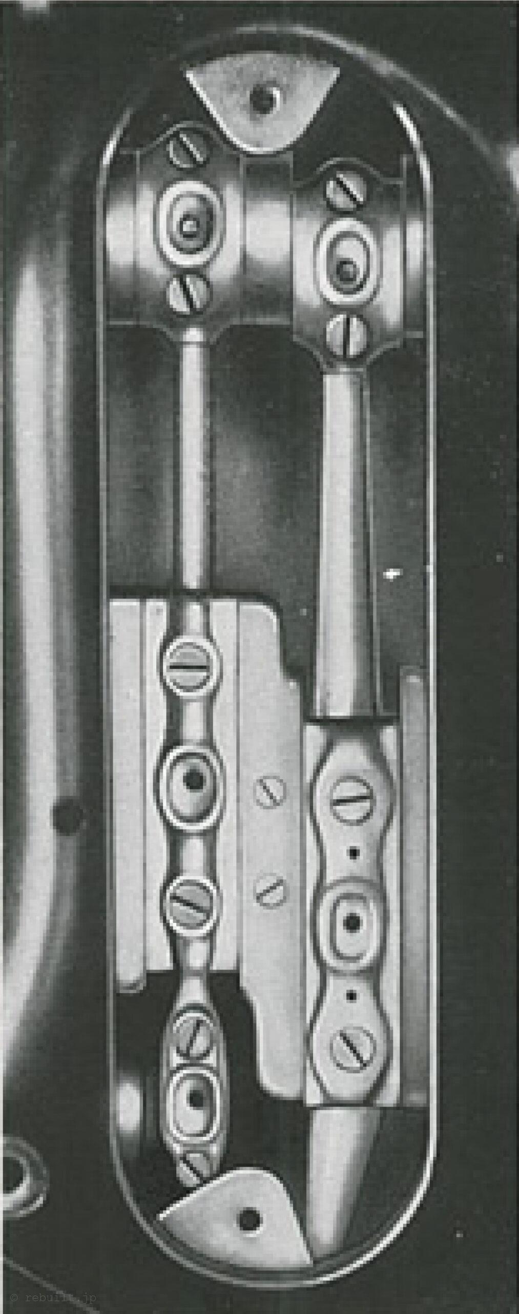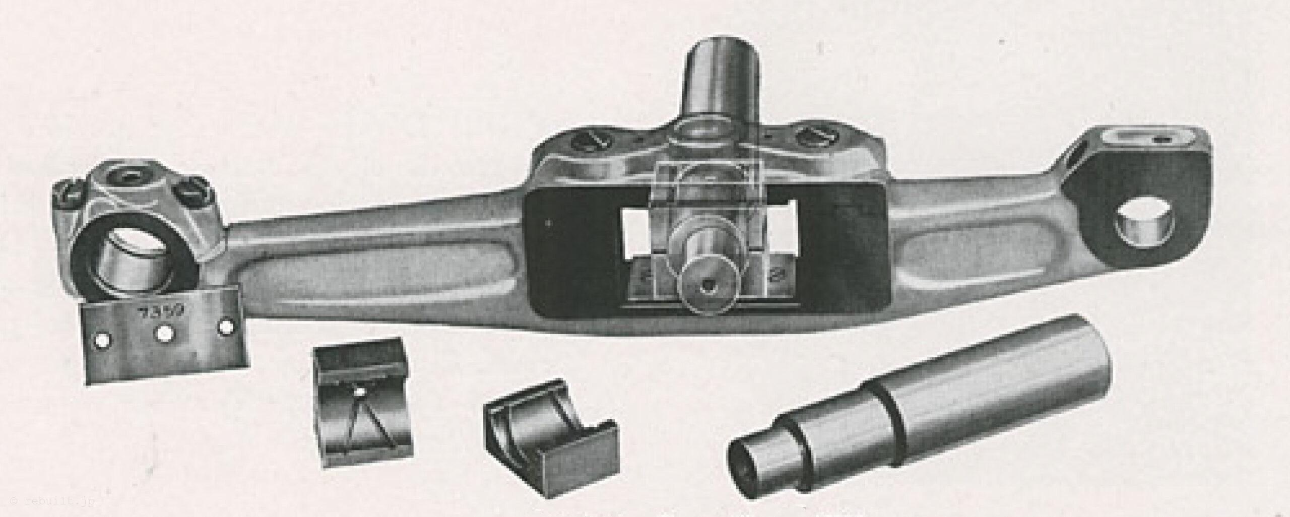下の図は、ルーパークランクレバーに硬化・研磨された鋼板と交換可能なピボットブロックが慎重に取り付けられている様子を示しています。フィードバーの強度が大幅に向上すると同時に、フィードバーピボットベアリングへの適切な潤滑を確保するための適切なオイルチャネルが設けられています。